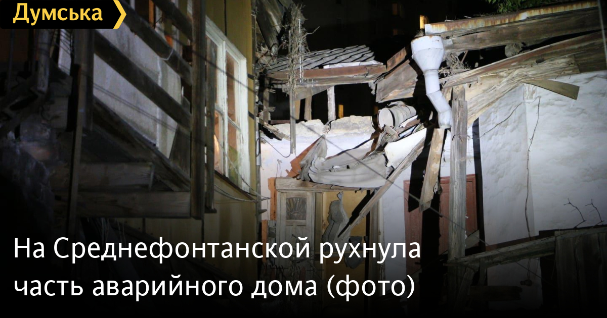 В доме №29 по улице Среднефонтанской обрушилась часть галереи на втором этаже.