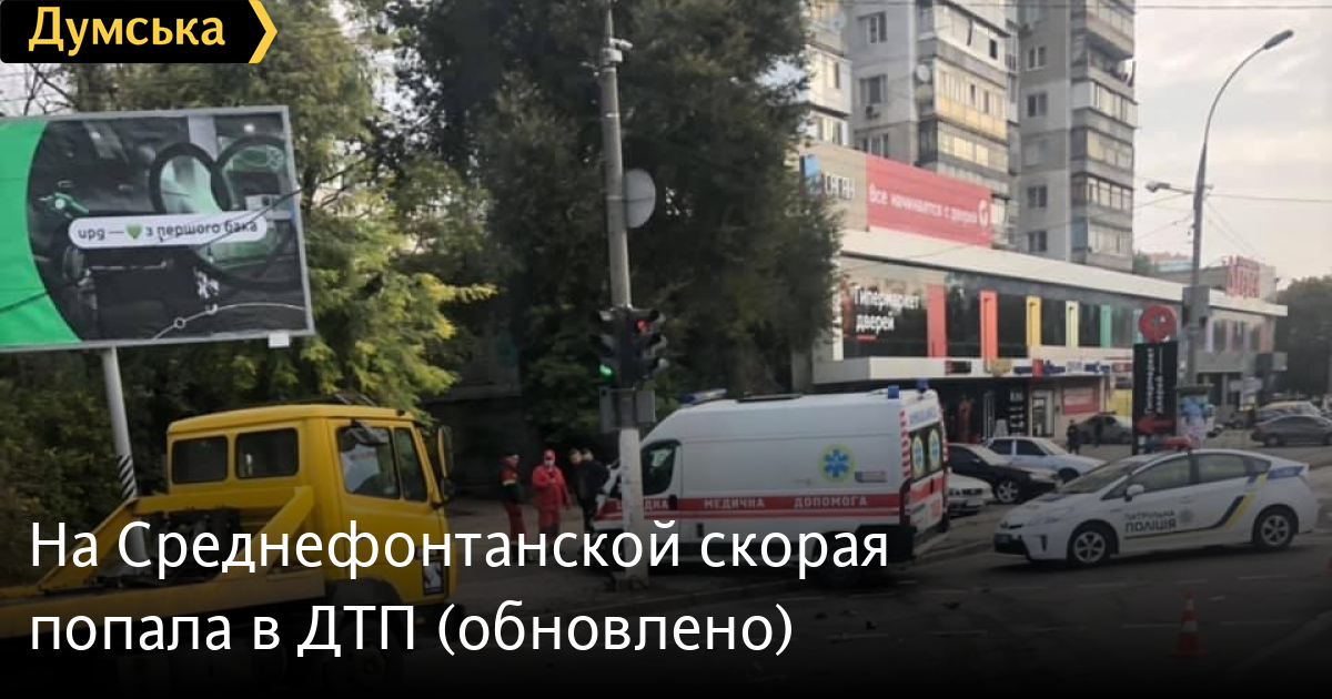 Автомобиль скорой помощи попал в ДТП на Среднефонтанской. Об инциденте «Думской» сообщили очевидцы происшествия. От удара скорую откинуло на тротуар. Патрульная полиция устанавливает обстоятельства инцидента. Подробности обещают обнародовать позже. Фото: Ольга Левчук ОБНОВЛЕНО В 11:45. Как уточнили в полиции, столкновение легкового автомобиля Toyota и скорой помощи произошло ночью на перекрестке Аритиллерийской и Краснова. В больницу доставили водителей. На месте работает следователь по ДТП. СМЕРТЬ РОССИЙСКИМ ОККУПАНТАМ! Заметили ошибку? Выделяйте слова с ошибкой и нажимайте control-enter |