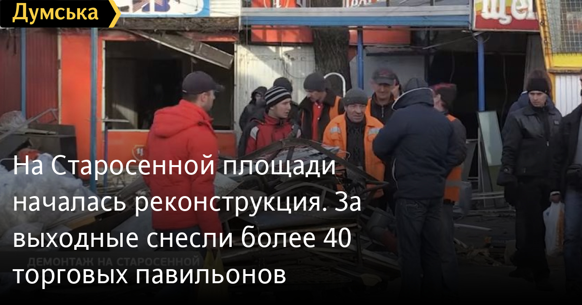 На Старосенной площади началась реконструкция. За выходные снесли более 40 торговых павильоновТорговые лотки под снос! В минувшие выходные коммунальные службы разбирали торговый ряд на Старосенной площади – на его месте образовалась огромная стихийная свалка, которую постепенно растаскивали дворники и местные бомжи. За ходом реконструкции следил наш корреспондент Александр Тарасенко. СМЕРТЬ РОССИЙСКИМ ОККУПАНТАМ! Заметили ошибку? Выделяйте слова с ошибкой и нажимайте control-enter Думская ТВ. Сюжеты: