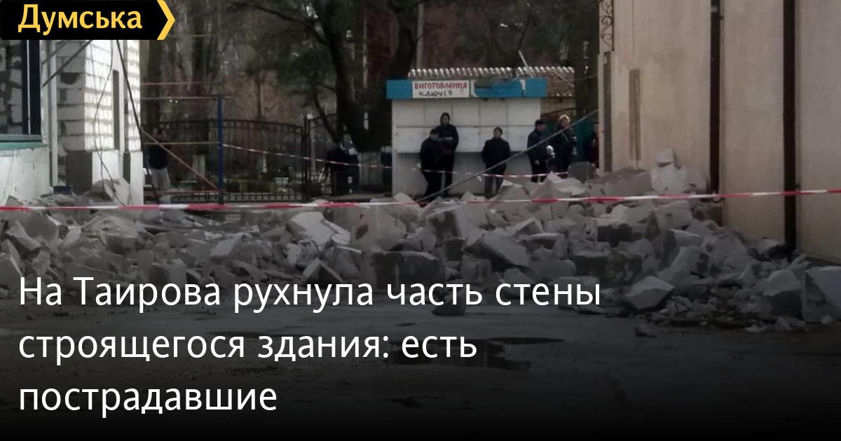 На проспекте Глушко рухнула часть стены строящегося торгового центра, расположенного между домами номер 13 и 15.
