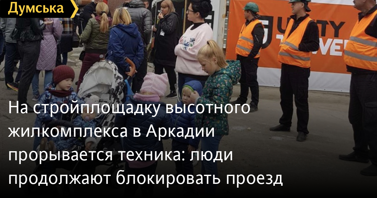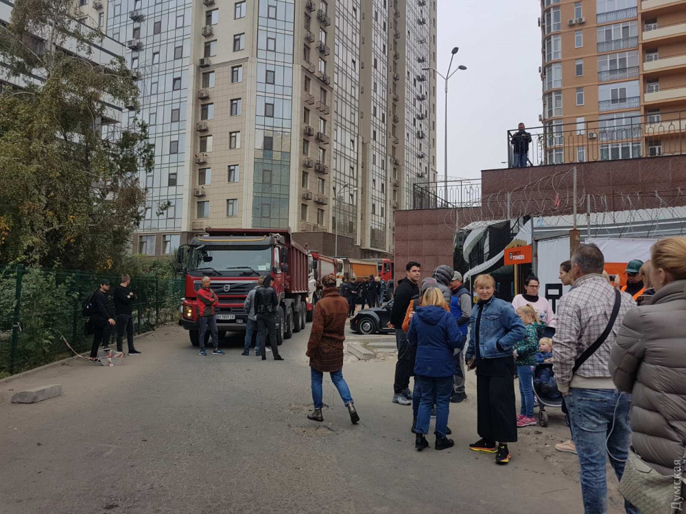 На стройплощадку многоквартирного жилого комплекса UNITY TOWERS на Гагаринском плато, которую продолжают блокировать местные жители, пытается проехать строительная техника.