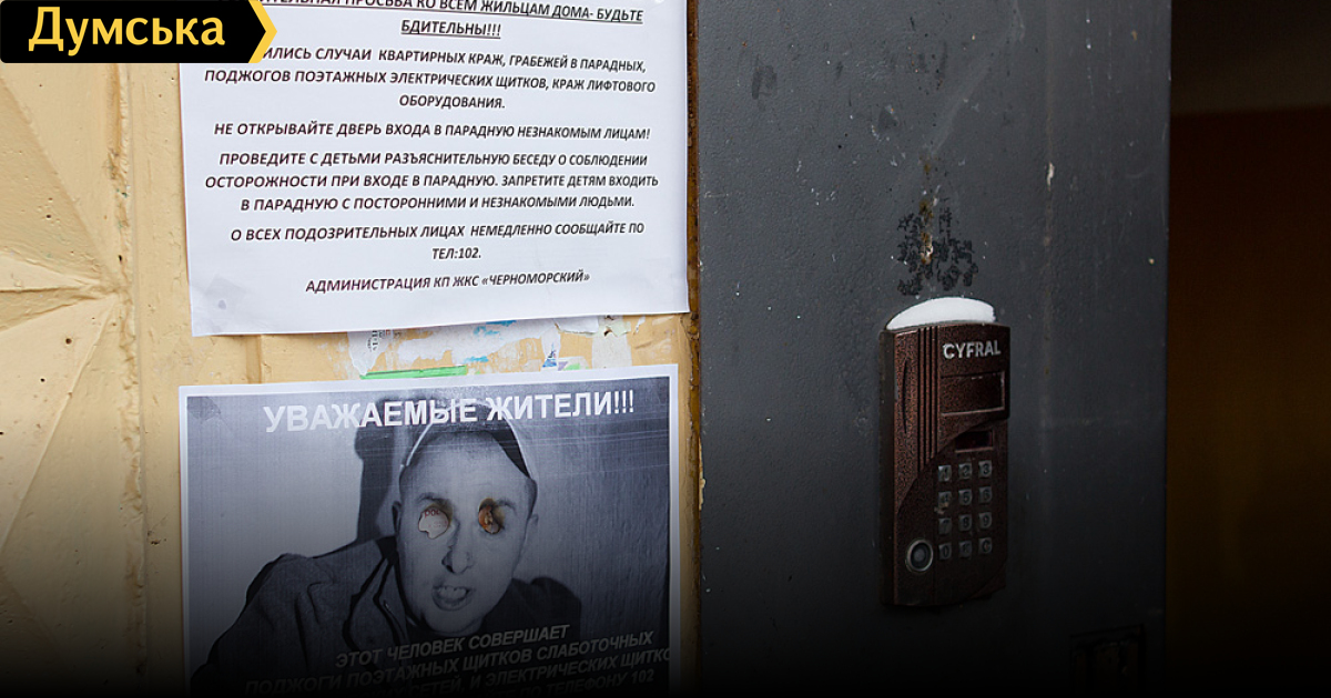 В Киевском районе Одессы разыскивается поджигатель электрощитовых. Объявления с фотографией преступника расклеены на большинстве парадных КП ЖКС «Черноморский»