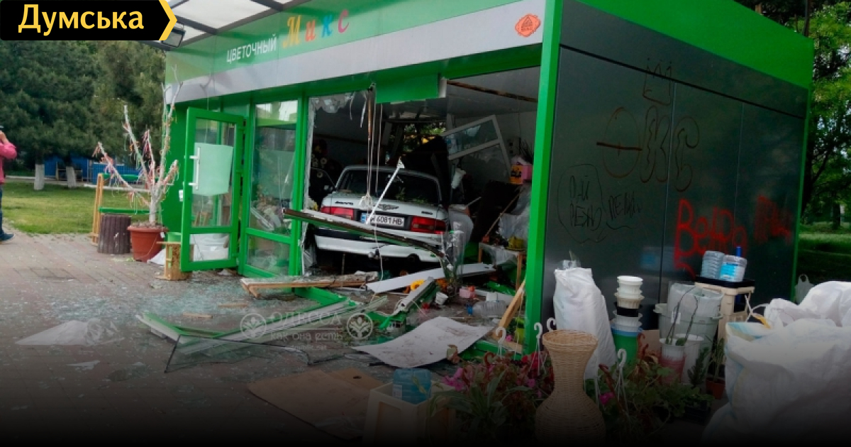 ДТП на Таирова: «Волга» разнесла цветочный магазин