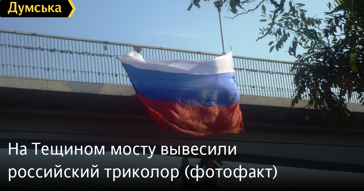 Неизвестные отметили День независимости Украины тем, что вывесили на Тещином мосту российский триколор. Флаг появился на сооружении еще утром и развевается там до сих пор.