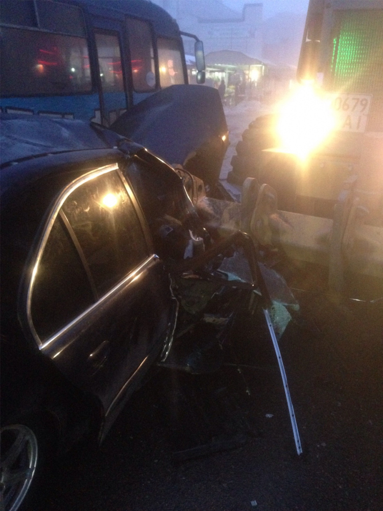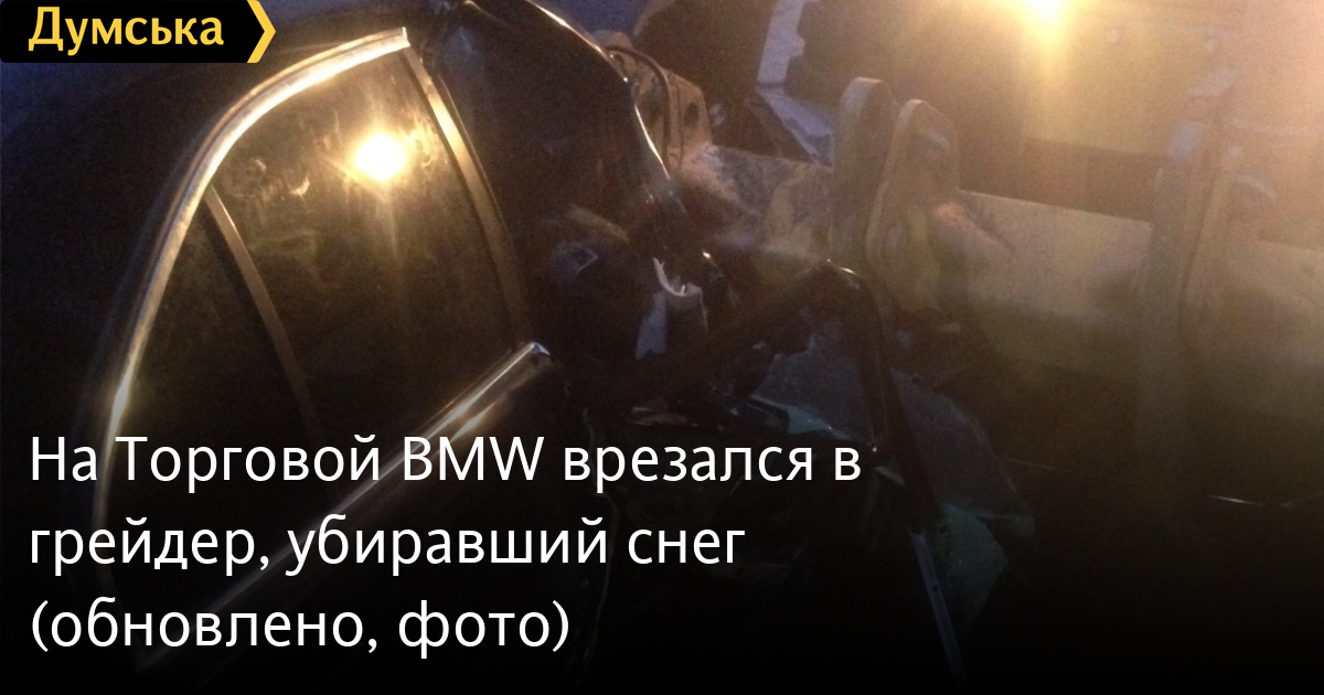 Как сообщили «Думской» очевидцы, автомобиль BMW на большой скорости врезался в убиравший снег грейдер.