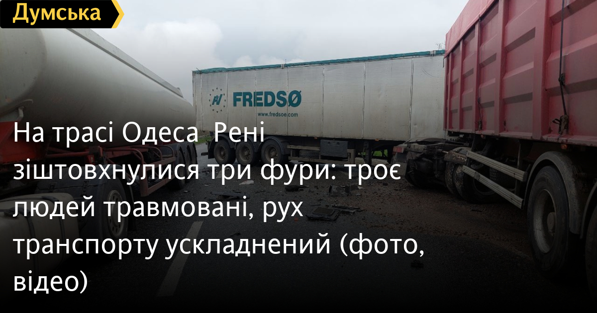 На трасі Одеса – Рені зіштовхнулися три фури: троє людей травмовані, рух транспорту ускладнений (фото, відео)Три людини, зокрема дитина, постраждали в Аварії на трасі Одеса – Рені. Через зіткнення трьох вантажівок на ділянці між селами Старокозаче та Монаші тимчасово організовано реверсний рух однією смугою, повідомили в поліції Одещини. За попередньою інформацією, водій DAF не дотримався дистанції і допустив зіткнення з цистерною Scania, яка рухалася перед ним, а далі виїхав на зустрічну смугу і там зіштовхнувся з Volvo. Травми різного ступеня тяжкості отримали пасажирки DAF –23-річна мати із немовлям, а також 30-річний водій Volvo. Їх швидкою доправили в лікарню. Двоє інших керманичів залишилися на місці події. Наразі там працюють співробітники Білгород-Дністровського районного відділу поліції. Слідчі встановлюють всі обставини дорожньо-транспортної пригоди. СМЕРТЬ РОСІЙСЬКИМ ОКУПАНТАМ! Помітили помилку? Виділяйте слова з помилкою та натискайте control-enter Новини по цій темі: 30 серпня 2025: Машина вилетіла в кювет: мер Рені потрапив в аварію, його мати загинула, а маленький син у лікарні (фото) 18 серпня 2025: Троє загинули, один у лікарні: на трасі Одеса-Рені водій Mercedes не пропустив фуру (фото) 28 липня 2025: П'яний на "Ягуарі" або гіпертонік? Звільнений топ-посадовець одеської поліції хоче повернутися на службу 2 квітня 2025: В Одесі водій BMW спровокував аварію, в якій постраждали п`ятеро людей, і втік (фото, відео) |
