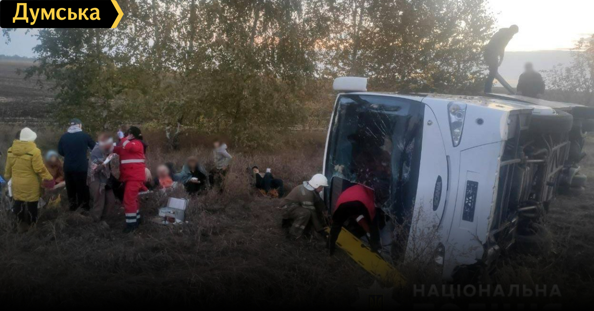 Автобус, в котором находились 22 пассажирам и два водителя, перевернулся утром 11 октября на 174 км автодороги Киев — Харьков — Должанский возле села Карпиловка Лубенского района. Как сообщает Главное управление полиции в Полтавской области, по предварительной информации, автобус под управлением 56-летнего водителя, следовавший из Луганской области в Киев, съехал с дороги и перевернулся на бок. В результате ДТП водитель и десять пассажиров получили травмы различной степени тяжести. Причины и обстоятельства аварии устанавливает следствие. СМЕРТЬ РОСІЙСЬКИМ ОКУПАНТАМ! Помітили помилку? Виділяйте слова з помилкою та натискайте control-enter Новини по цій темі: 10 листопада 2025: Смертельна аварія під Одесою: водія виправдали через відсутність доказів 30 серпня 2025: Машина вилетіла в кювет: мер Рені потрапив в аварію, його мати загинула, а маленький син у лікарні (фото) 18 серпня 2025: Троє загинули, один у лікарні: на трасі Одеса-Рені водій Mercedes не пропустив фуру (фото) 28 липня 2025: П'яний на "Ягуарі" або гіпертонік? Звільнений топ-посадовець одеської поліції хоче повернутися на службу |