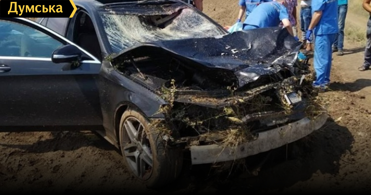Автомобиль «Мерседес», двигаясь в сторону Одессы, вылетел на встречную полосу и обочину, где наехал на мужчину и женщину, стоявших возле торговой палатки с арбузами. После этого он проехал еще 150 метров и остановился в поле.