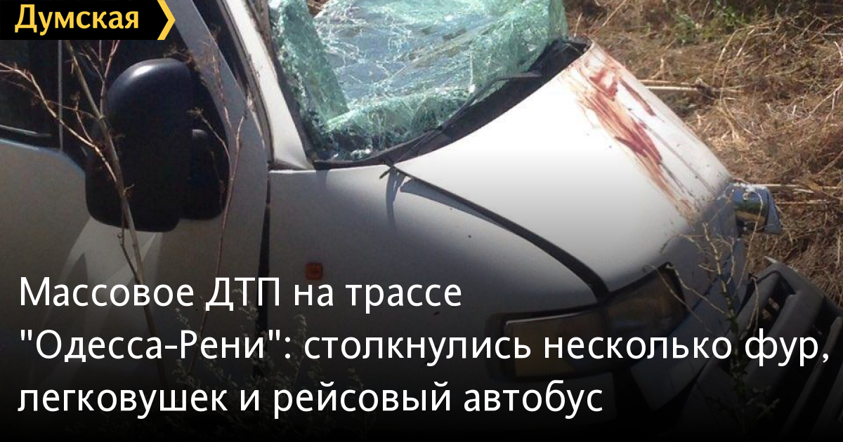 Массовое ДТП на трассе «Одесса-Рени»: столкнулись несколько фур, легковушек и рейсовый автобусСегодня, 19 июля, на трассе «Одесса-Рени» в районе села Монаши случилась масштабная авария. Как сообщили «Думской» очевидцы, участниками ДТП стали три грузовых автомобиля, две легковушки и два микроавтобуса, один из которых следовал по маршруту «Измаил-Одесса». На данный момент известно об одном погибшем. Как минимум два человека получили травмы. Среди пассажиров рейсового автобуса пострадавших нет. Возможной причиной происшествия называют задымление проезжей части в результате пожара на придорожной территории. СМЕРТЬ РОСІЙСЬКИМ ОКУПАНТАМ! Помітили помилку? Виділяйте слова з помилкою та натискайте control-enter Новини по цій темі: 10 листопада 2025: Смертельна аварія під Одесою: водія виправдали через відсутність доказів 30 серпня 2025: Машина вилетіла в кювет: мер Рені потрапив в аварію, його мати загинула, а маленький син у лікарні (фото) 18 серпня 2025: Троє загинули, один у лікарні: на трасі Одеса-Рені водій Mercedes не пропустив фуру (фото) 28 липня 2025: П'яний на "Ягуарі" або гіпертонік? Звільнений топ-посадовець одеської поліції хоче повернутися на службу |