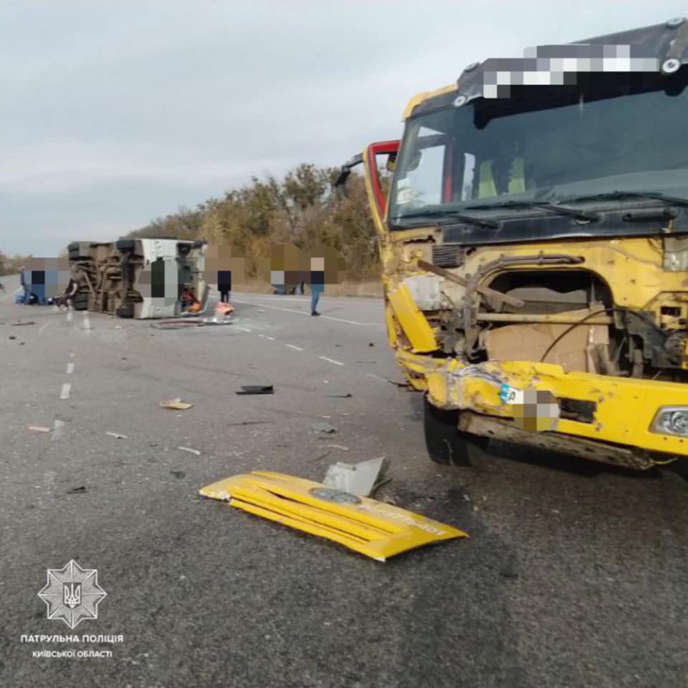 Рядом с городом Обухов, в Киевской области, произошла авария с участием пассажирского автобуса и грузовика. После столкновения автобус перевернулся, несколько человек получили травмы. Как сообщила патрульная полиция Киевской области, авария произошла примерно в 15:00 на 51 километре автодороги Киев — Знаменка. СМЕРТЬ РОССИЙСКИМ ОККУПАНТАМ! Заметили ошибку? Выделяйте слова с ошибкой и нажимайте control-enter |