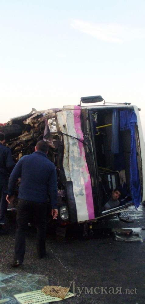 Сегодня около 6 часов утра на 115 километре трассы Одесса-Рени произошло ДТП с участием пассажирского автобуса и легкового автомобиля «Пежо». Как сообщила пресс-служба регионального управления ГСЧС в Одесской области, 31-летний водитель «Пежо» не справился с управлением и выехал на полосу встречного движения, где столкнулся с автобусом, в котором находились шесть человек. После столкновения автобус перевернулся на бок, ногу 44-летнего водителя зажало дверью. Травмы также получила 55-летняя пассажирка. Водитель «Пежо» от полученных травм скончался. На месте происшествия работала спасательная служба райцентра Сарата. С помощью крана спасатели подняли перевернутый автобус и извлекли из покореженной легковушки тело погибшего водителя. СМЕРТЬ РОСІЙСЬКИМ ОКУПАНТАМ! Помітили помилку? Виділяйте слова з помилкою та натискайте control-enter |