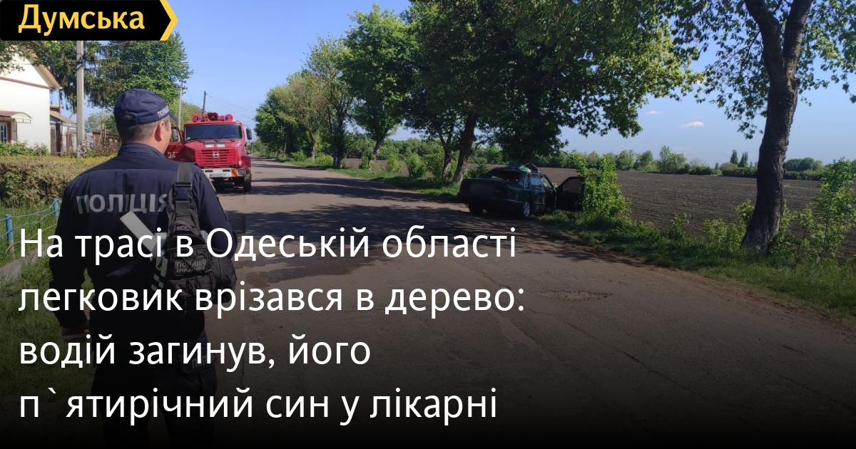 На трасі в Одеській області легковик врізався в дерево: водій загинув, його п`ятирічний син у лікарніЧоловік загинув, а його п'ятирічний син потрапив до лікарні внаслідок аварії, що сталася в неділю на трасі між містом Кодима і селом Федорівка. Водій легкового «Форда» не впорався з керуванням і врізався в дерево, повідомили в поліції. Пошкоджене авто біля дороги виявили випадкові перехожі. Вони викликали поліцію та швидку. У лікарні в постраждалого хлопчика діагностували забій голови, його стан медики оцінюють як задовільний. Обставини аварії встановить слідство. Помітили помилку? Виділяйте слова з помилкою та натискайте control-enter Новини по цій темі: 30 серпня 2025: Машина вилетіла в кювет: мер Рені потрапив в аварію, його мати загинула, а маленький син у лікарні (фото) 18 серпня 2025: Троє загинули, один у лікарні: на трасі Одеса-Рені водій Mercedes не пропустив фуру (фото) 28 липня 2025: П'яний на "Ягуарі" або гіпертонік? Звільнений топ-посадовець одеської поліції хоче повернутися на службу 2 квітня 2025: В Одесі водій BMW спровокував аварію, в якій постраждали п`ятеро людей, і втік (фото, відео) |