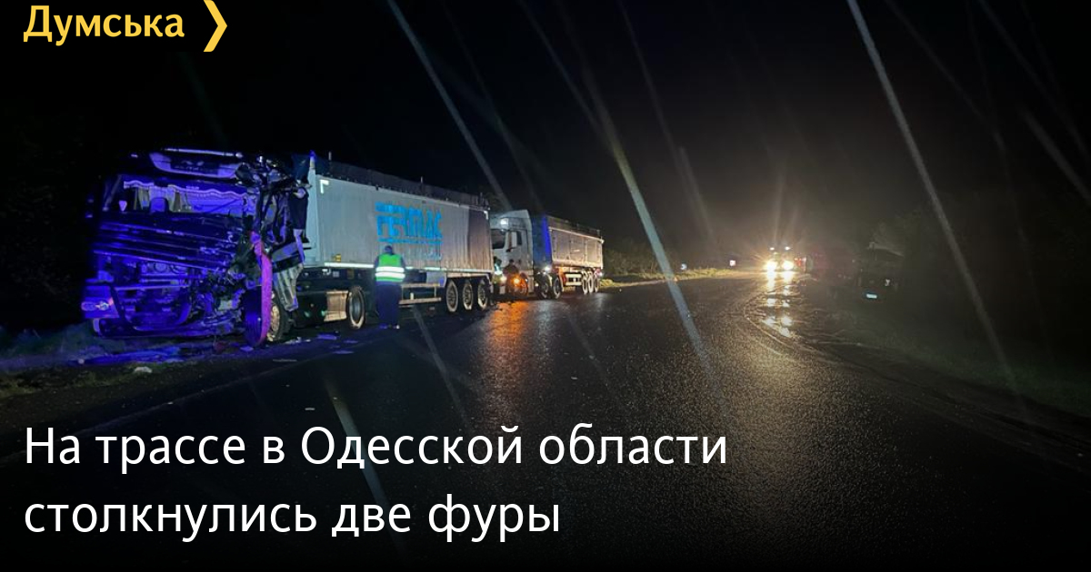 Аварія за участю двох вантажівок сталася на трасі Одеса-Рені за сорок кілометрів від Ізмаїла. Як повідомила пресслужба обласної поліції, 46-річний мешканець Миколаївської області, рухаючись вантажним автомобілем MAN із напівпричепом з Ізмаїла в напрямку Одеси, не впорався з керуванням, допустив виїзд напівпричепа на зустрічну смугу, що призвело до його зіткнення з вантажним автомобілем DAF, який рухався в зустрічному напрямку під керуванням 42-річного жителя Чернігівщини. Внаслідок аварії водія DAF затисло в кабіні. Бригада швидкої допомоги госпіталізувала його до лікарні. Водій MAN не постраждав. Обставини аварії встановлюють правоохоронці. Помітили помилку? Виділяйте слова з помилкою та натискайте control-enter Новини по цій темі: 30 серпня 2025: Машина вилетіла в кювет: мер Рені потрапив в аварію, його мати загинула, а маленький син у лікарні (фото) 18 серпня 2025: Троє загинули, один у лікарні: на трасі Одеса-Рені водій Mercedes не пропустив фуру (фото) 28 липня 2025: П'яний на "Ягуарі" або гіпертонік? Звільнений топ-посадовець одеської поліції хоче повернутися на службу 2 квітня 2025: В Одесі водій BMW спровокував аварію, в якій постраждали п`ятеро людей, і втік (фото, відео) |