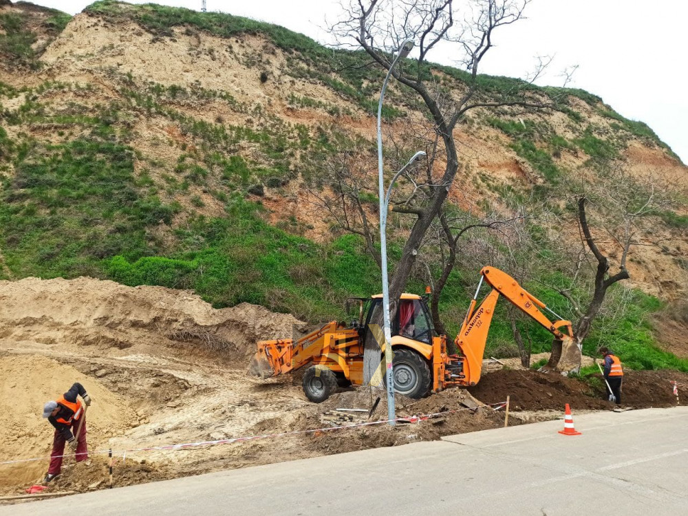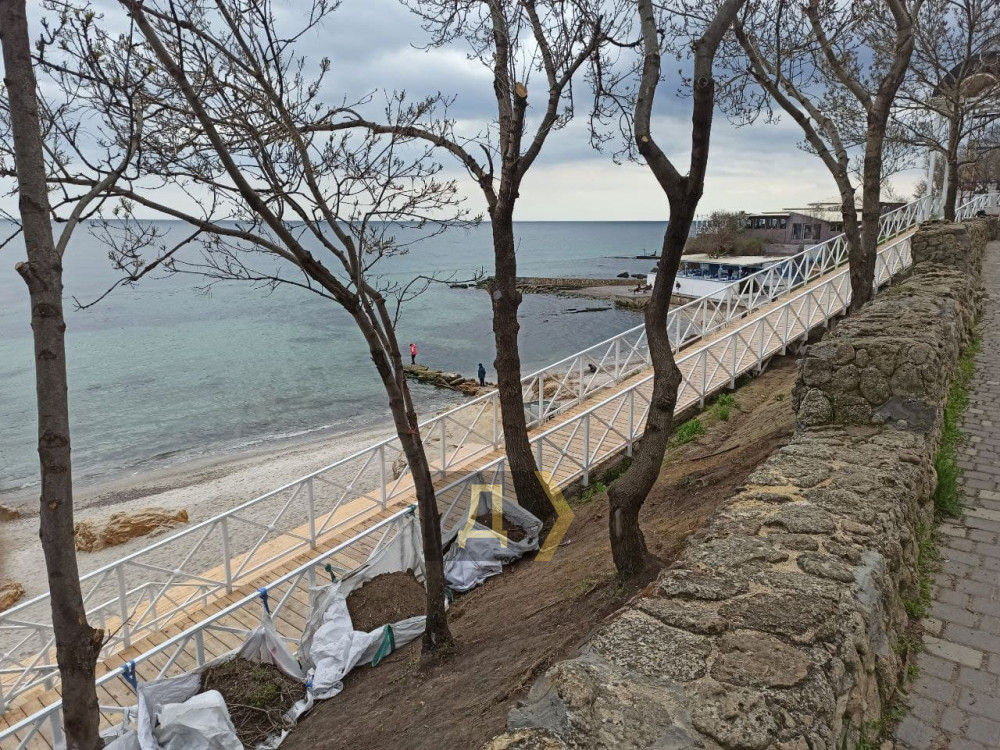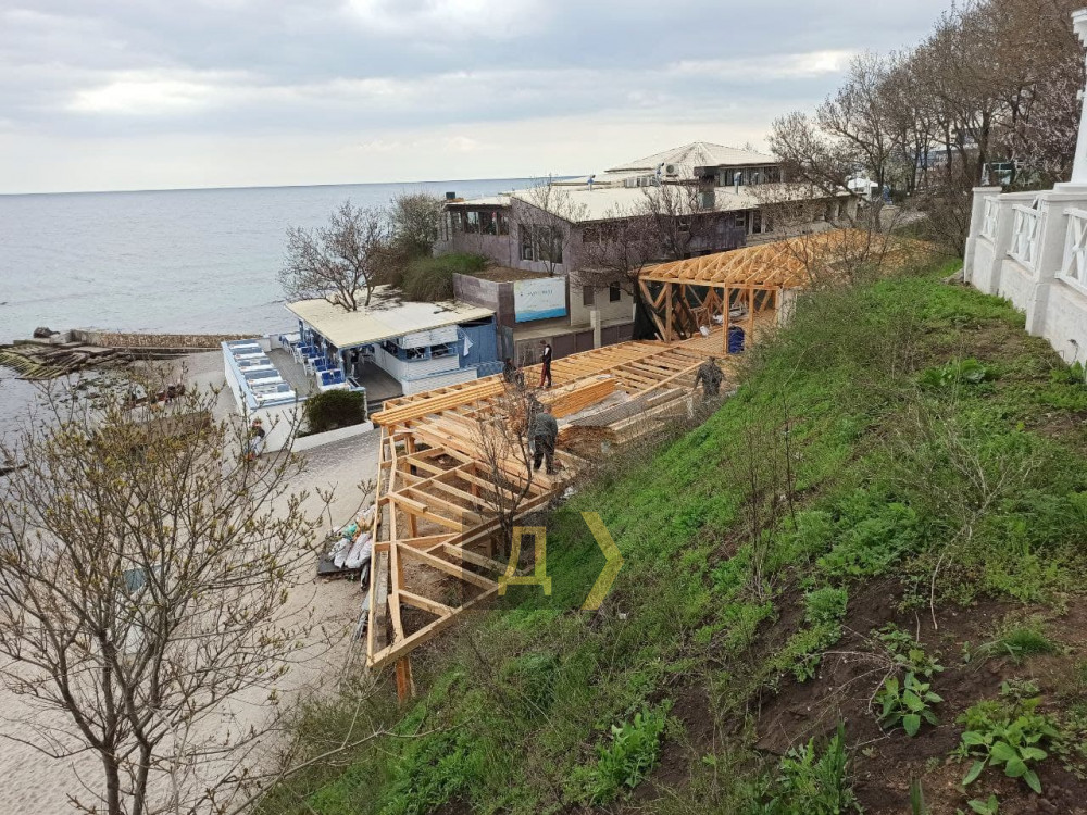 Как передает корреспондент «Думской», речь идет об участке, где недавно срезали часть подошвы приморского склона. Работы ведет компания «Укртрансгрупп-2005» в рамках благоустройства набережной над арендуемым ею пляжем.
