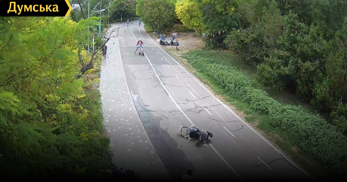 Не думаю, що є вина велосипедиста, швидше за все або метушливі рухi мами з коляскою або раптова перешкода на шляху руху, мужику звичайно  бажаю одужання. І до речі, що на трасі здоров'я роблять самокатники? Їх же начебто погнали звідти: