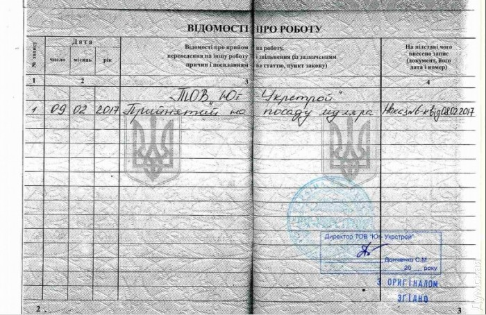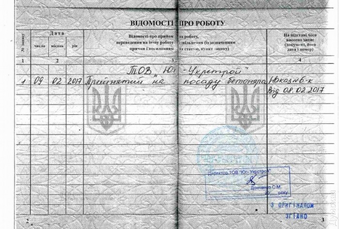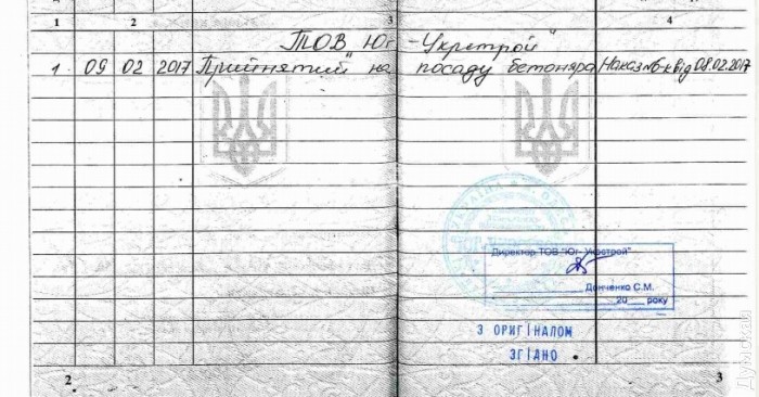 Теперь поговорим о технической базе этих строительных фирм. Согласно с документами, предоставленными ООО «Юг-Укрстрой», какая-либо собственная техника у компании отсутствует. Работники на предприятии вроде бы есть, но их трудовые книжки выглядят довольно странно: люди 1960-х годов рождения имеют первую запись в трудовых книжках, заведенных в ООО «Юг-Укрстрой», в феврале 2017 года. Где эти люди работали раньше, ведь в советское время существовала уголовная ответственность за тунеядство, или у них есть другие, настоящие, трудовые книжки — выяснить не удалось.