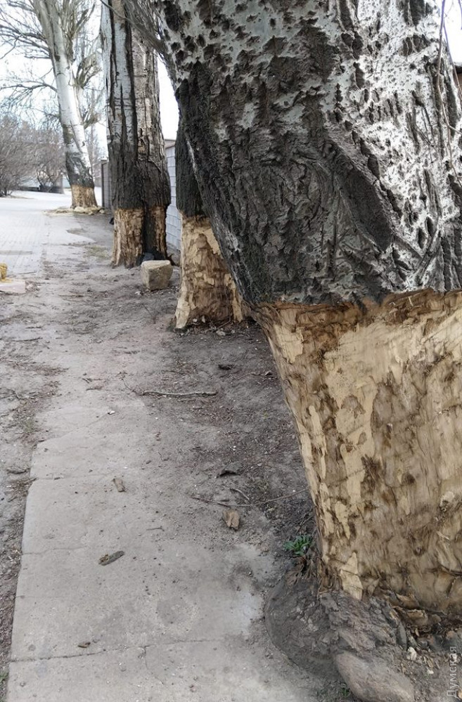 Фотографии деревьев, у которых варварски обрезана кора, опубликовал одесский журналист Олег Байдалюк.