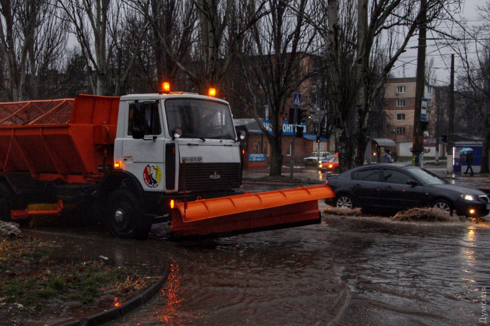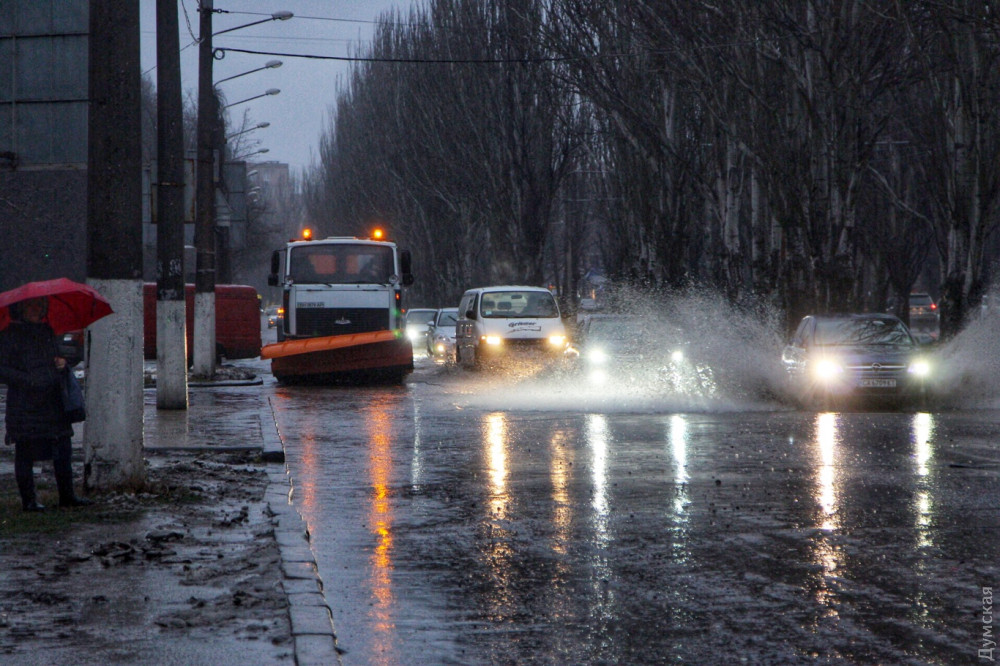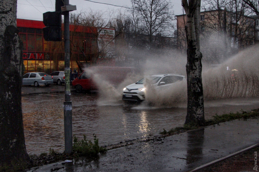 На пересечении Ицхака Рабина и Героев Крут небольшое подтопление.