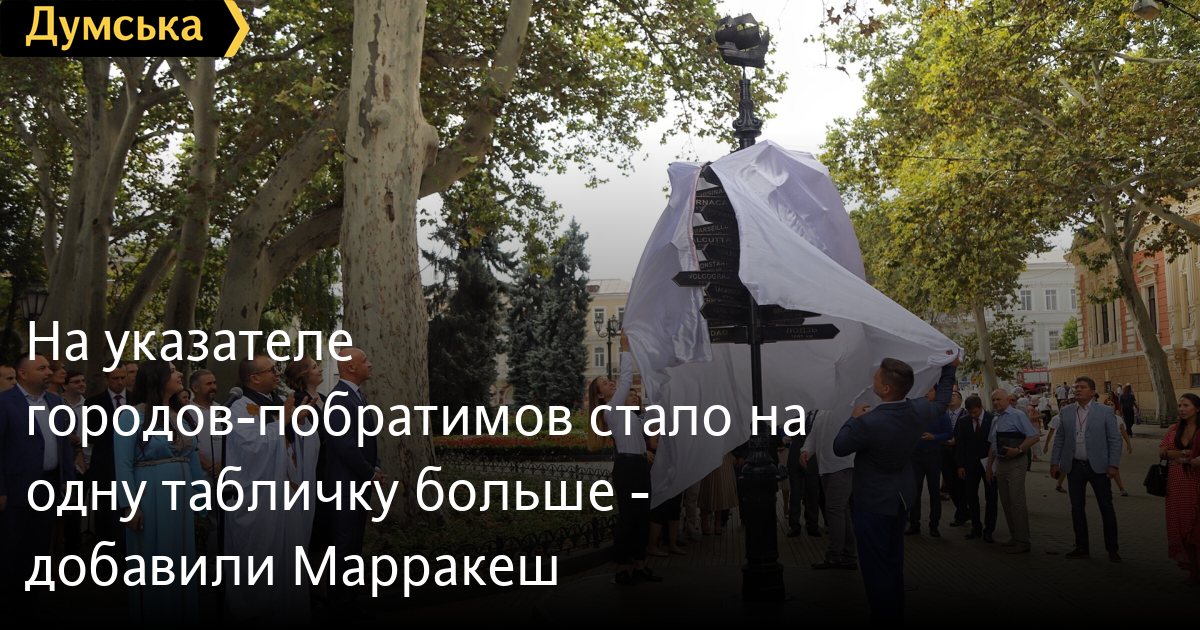На указателе городов-побратимов стало на одну табличку больше — добавили МарракешВ рамках сегодняшних празднований возле мэрии открыли табличку города-побратима Марракеш на указателе с названиями других побратимов Одессы. Как рассказал собравшимся секретарь муниципалитета африканского города Халид Эль Фатауи, подписание договора о сотрудничестве, это не только путешествия, но и бизнес контакты. «Я приглашаю вас в Марракеш. Наши взаимоотношения — это не только туризм, но и рабочие места и сотрудничество частного бизнеса. Африка очень стремительно развивается, и нам есть, что предложить одесситам и украинцам», — отметил Халид Эль Фатауи и добавил к слову, что познакомился со своей женой в нашем городе. В честь появления таблички Геннадий Труханов подарил коллеге уменьшенную копию указателя. СМЕРТЬ РОССИЙСКИМ ОККУПАНТАМ! Заметили ошибку? Выделяйте слова с ошибкой и нажимайте control-enter |