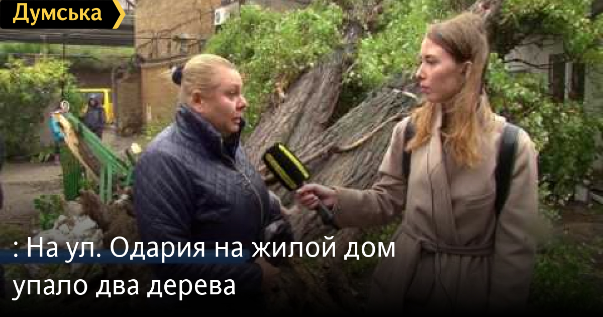 На улице Одария,18 на жилой дом упали два больших дерева. Местные жители обратились за помощью в редакцию Думской.ТВ.