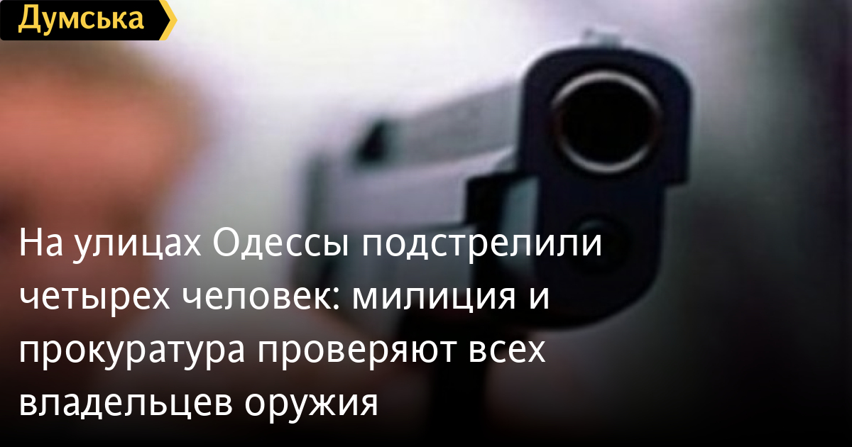 На улицах Одессы подстрелили четырех человек: милиция и прокуратура проверяют всех владельцев оружияЗа один день в Одессе произошло два конфликта, участники которых применили огнестрельное оружие. Как сообщает пресс-служба облУВД, правоохранители задержали 37-летнего мужчину, который утром 28 июля ранил двух посетителей одесского бара «Камыш» из охотничьего ружья. О случившемся милицию уведомили врачи, принимавшие раненых. Следственно-оперативная группа выяснила, что между потерпевшими и еще одним посетителем заведения возник конфликт, переросший в драку. Последний в качестве аргумента использовал нарезной карабин «Форт-202», ранив в ногу 28-летнего одессита и его друга-ровесника. Сам стрелок, ранее судимый за хулиганство, утверждает, что оружие принадлежит его брату и взял он его без разрешения.Уголовное производство открыто по признакам преступления, предусмотренного ч.4 ст.296 УК (хулиганство). «Я распорядился о создании специальной группы, которая будет осуществлять тотальные проверки всех владельцев охотничьего оружия на предмет законности его хранения и использования, – заявил начальник облУВД Сергей Резников. — Я уверяю, что милиция применит все необходимые меры, чтобы не допустить повторения в Одессе событий, произошедших в развлекательном заведении «Беллини». Тем временем прокуратура напоминает, что в тот же день на Адмиральском проспекте неизвестные ранили из травматического пистолета еще двух мужчин. В ведомстве уточнили, что у одного — пулевые ранения в области плеча и бедра, другой получил травмы грудной клетки, живота и разрыв печени. Преступники по-прежнему в розыске. В связи с этим одесские прокуроры начинают свою проверку законности выдачи разрешений на ношение и хранение всех видов оружия. СМЕРТЬ РОССИЙСКИМ ОККУПАНТАМ! Заметили ошибку? Выделяйте слова с ошибкой и нажимайте control-enter |