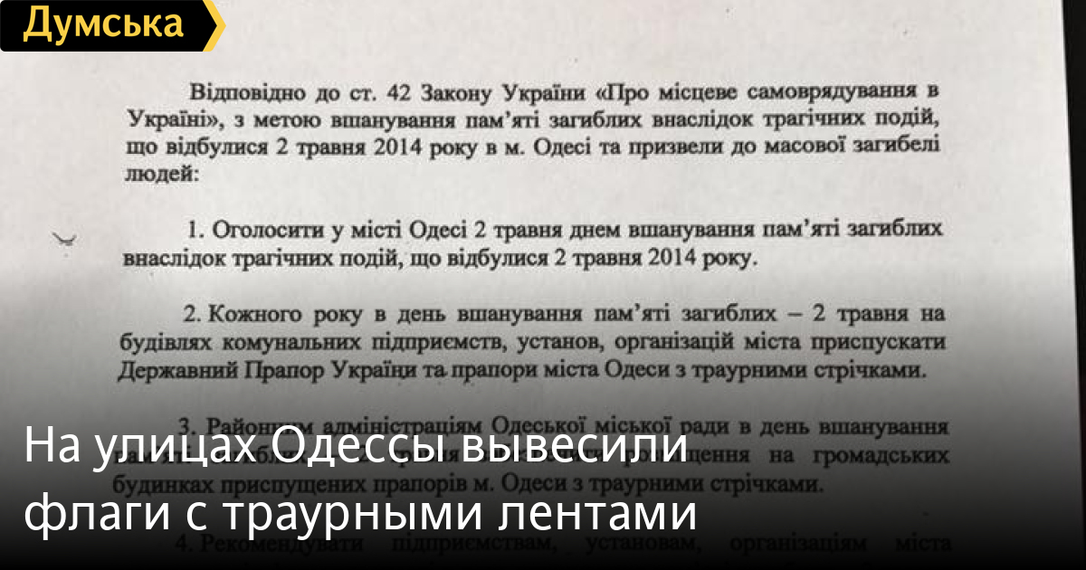Согласно документу, 2 мая в Одессе является траурным днем.
