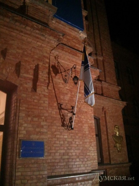 На здании Военной академии Одессы, что на 4-й Фонтана, поднят флаг Военно-морских сил страны. В течение часа туда должны прибыть верные присяге курсанты и преподаватели Академии ВМС имени П. Нахимова.