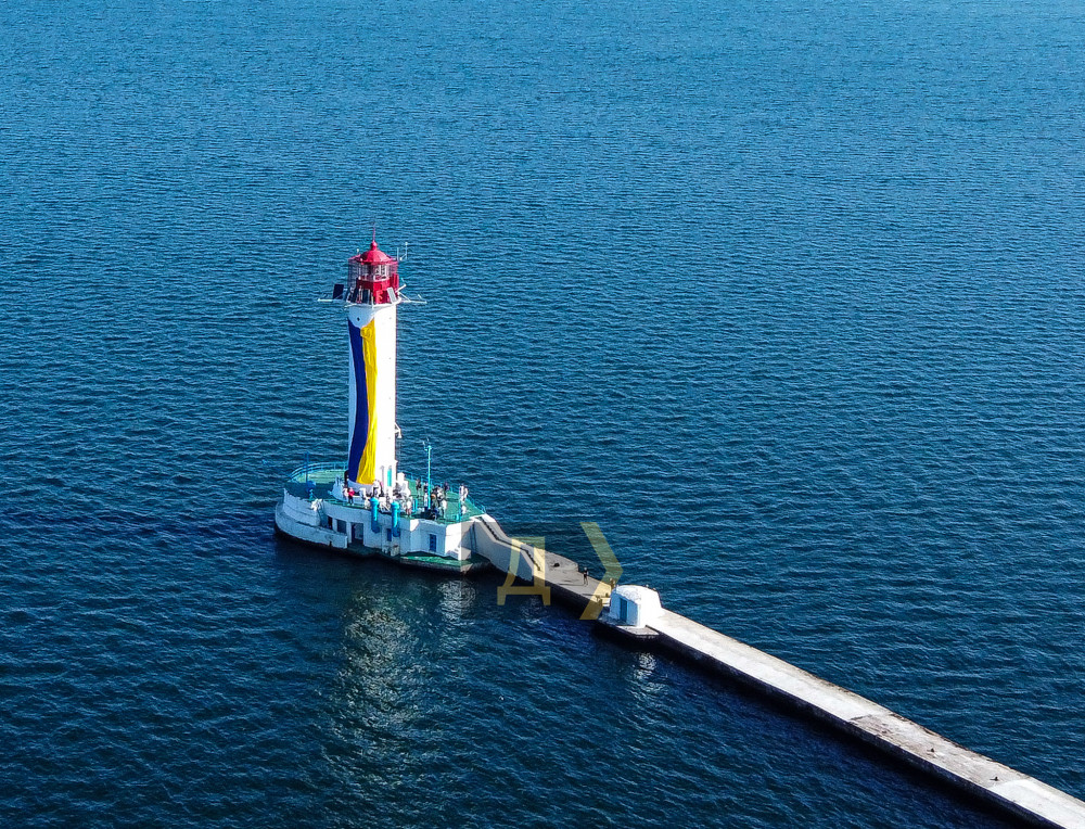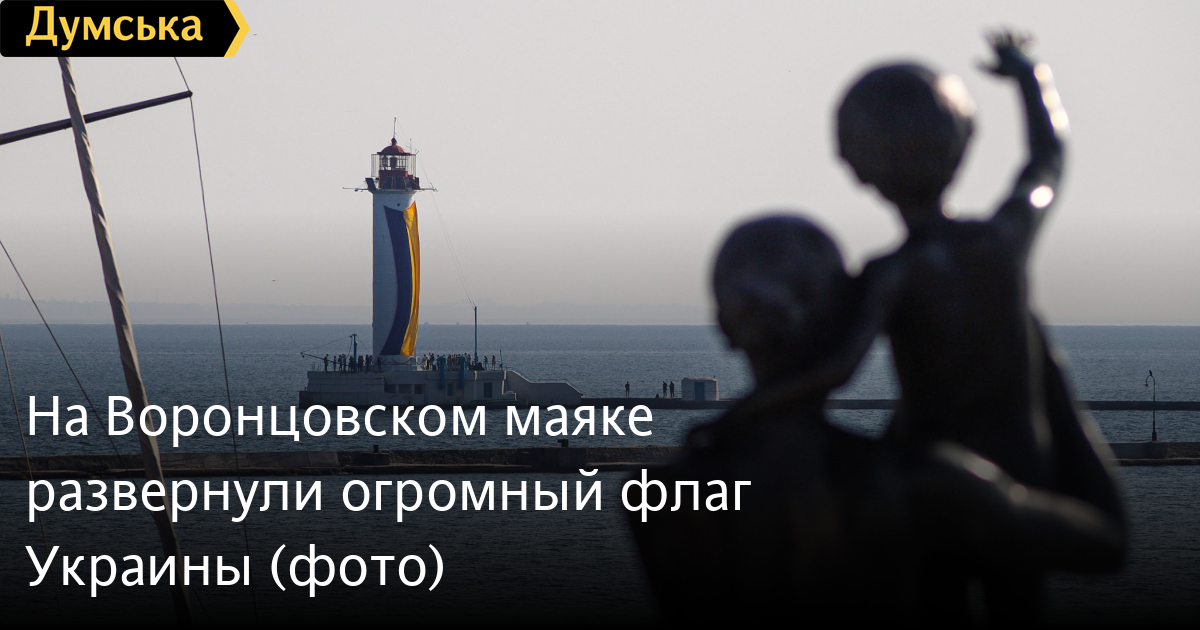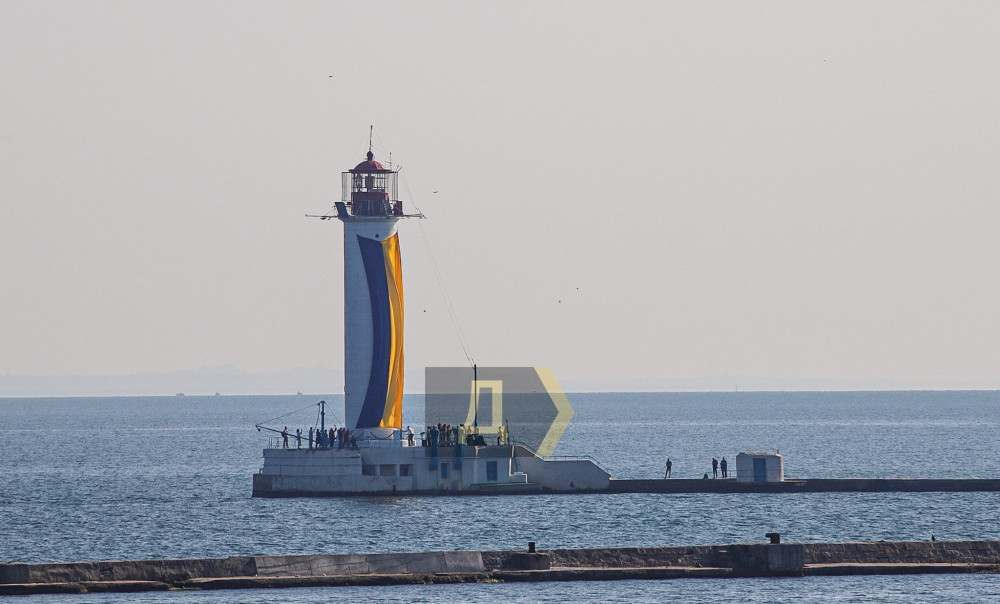 Огромный желто-голубой флаг развернули сегодня утром на главном маяке Одессы — Воронцовском.