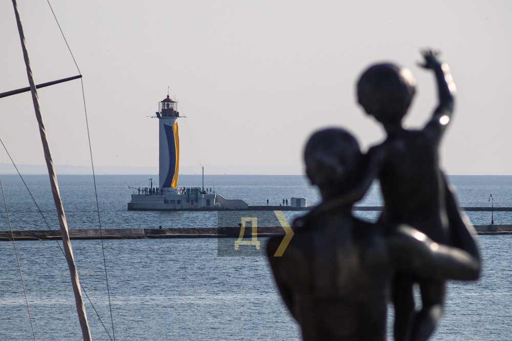 Поднятием флага на маяке уже второй год подряд открывается Вышиванковый фестиваль на Приморском бульваре. В этом году стяг провисит четыре дня, до Дня независимости включительно.