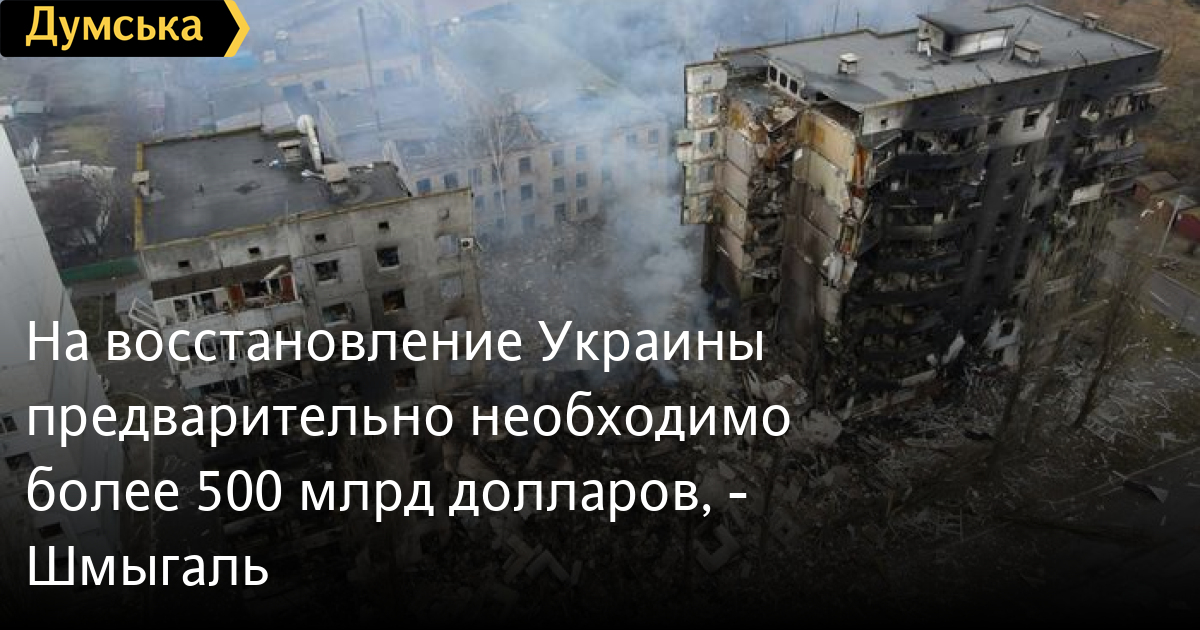 «Предварительные расчеты говорят, что сейчас прямые единовременные потери для Украины составляют более 500 миллиардов долларов США. Собственно, это те средства, которые потребуются, чтобы восстанавливать наше государство», — подчеркнул Шмыгаль.