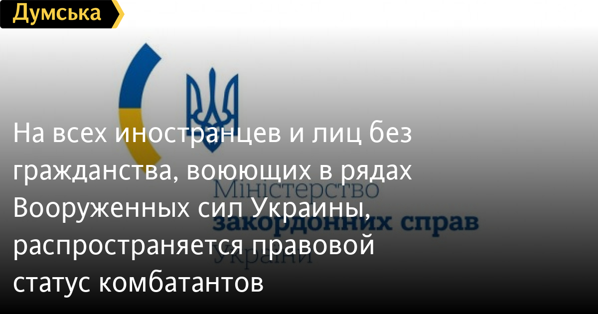 Все иностранные граждане и лица без гражданства, которые защищают нашу страну в составе Вооруженных Сил Украины, имеют правовой статус комбатантов.