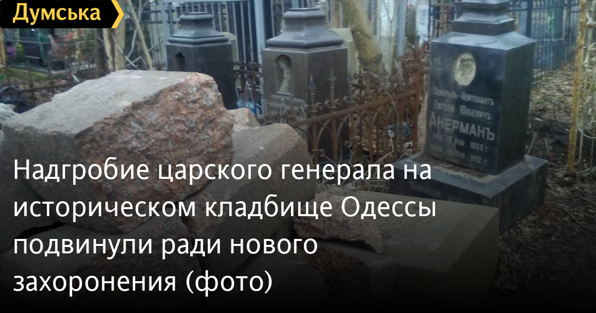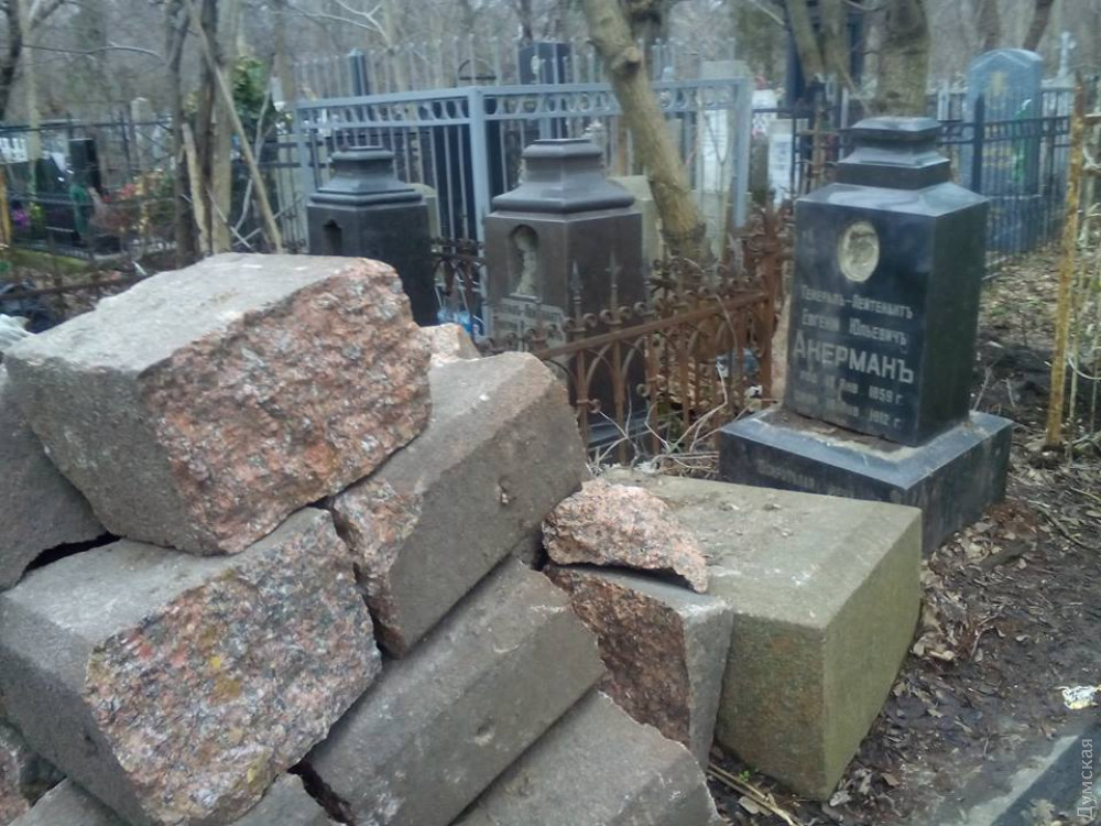 »На Втором христианском кладбище уничтожено еще одно военное захоронение дореволюционных времен — генерал-лейтенанта Акермана. Надгробие военного «уютненько» подвинули к могилам отца и сына Путята, а на его месте уже новое захоронение», — возмущается одессит.