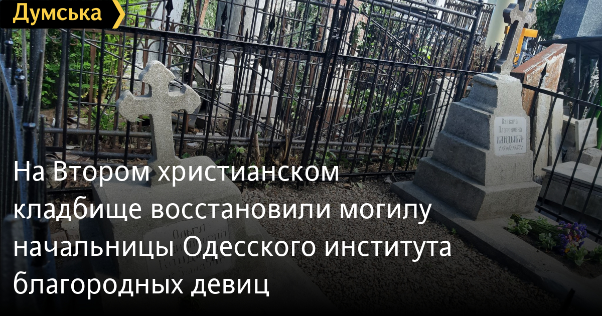 Волонтеры восстановили могильный крест и надгробие на могиле Варвары Платоновны Кандыбы, которая после основания в 1889 году Одесского института благородных девиц бессменно возглавляла его на протяжении 30 лет. Также по соседству отреставрировали могилу ее дочери Ольги, которая в 1907 году открыла гимназию на улице Пастера, сейчас превратившейся в 105-ю школу. Проектом занимались волонтеры из организации «Мой дом Одесса», которые потратили на восстановление могил 2,8 тыс. грн.