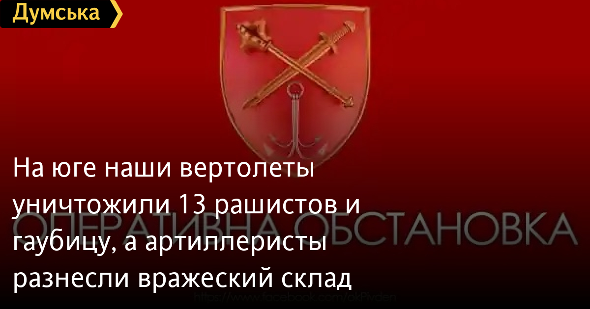 На півдні наші вертольоти знищили 13 рашистів та гаубицю, а артилеристи – рознесли ворожий склад (відео)У Херсонській та Миколаївській областях оперативна обстановка суттєво не змінилася. Противник в основному використовує оборонну тактику та з займаних рубежів обстрілює наші війська. В Оперативному командуванні «Південь» повідомили, що 23 серпня рашисти завдали десять авіаударів за позиціями Сил оборони на цьому напрямку. У відповідь наші гелікоптери тричі вдарили по скупченням ворогів. Було знищено 13 окупантів, самохідна гаубиця «Мста-С» та три автомобілі. Українська артилерія знищила ворожий склад боєприпасів у Нововоскресенському в Херсонській області. У Чорному морі вздовж кримського узбережжя маневрують до десяти кораблів ворожих, з них чотири несуть 28 ракет типу «Калібр». СМЕРТЬ РОСІЙСЬКИМ ОКУПАНТАМ! Помітили помилку? Виділяйте слова з помилкою та натискайте control-enter |