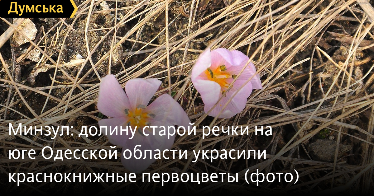 Незадолго до начала календарной весны в долине старой речки Минзул, берущей свое начало из родника под Болградом, ежегодно распускаются прекрасные белые и розовые цветы – крокус (или шафран) сетчатый и безвременник анкарский. Оба растения внесены в Красную книгу Украины. Не стал исключением и нынешний год: как только сошел снег, на холмах неподалеку от села Тополиное показались нежные венчики первоцветов.