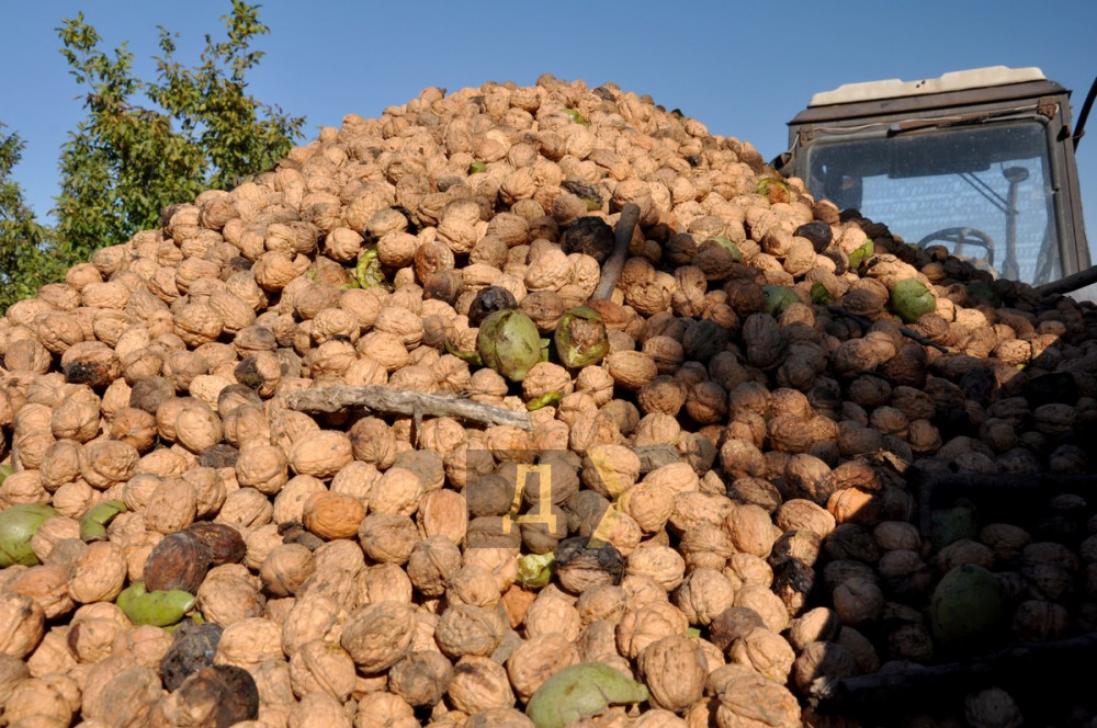 Сад даже сейчас – в конце октября — выглядит отлично: несмотря на то, что обычные ореховые деревья в городах и селах региона уже давно пожелтели и даже наполовину облетели, здесь листья все на месте и к тому же сохранили свой изумрудный цвет. Все это, безусловно, результат тщательного ухода: орехи постоянно поливают, сохраняя влажность почвы на уровне 80%. Это позволяет деревьям формировать крупные плоды хорошего качества. К слову, прошедшие в этом году обильные ливневые дожди помогли немного сэкономить на воде, поливали меньше, чем в прошлом году.
