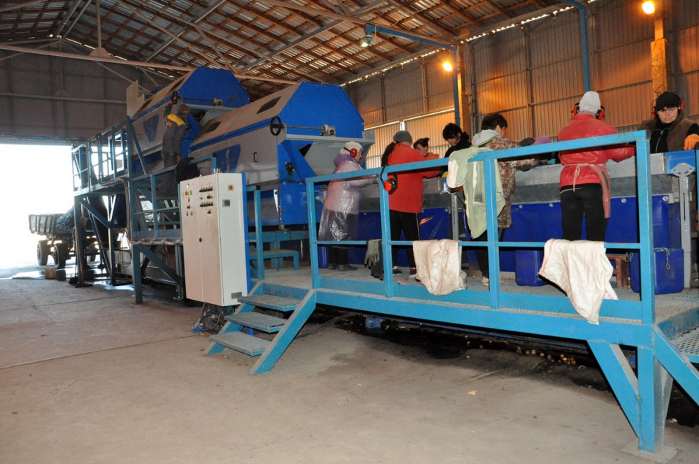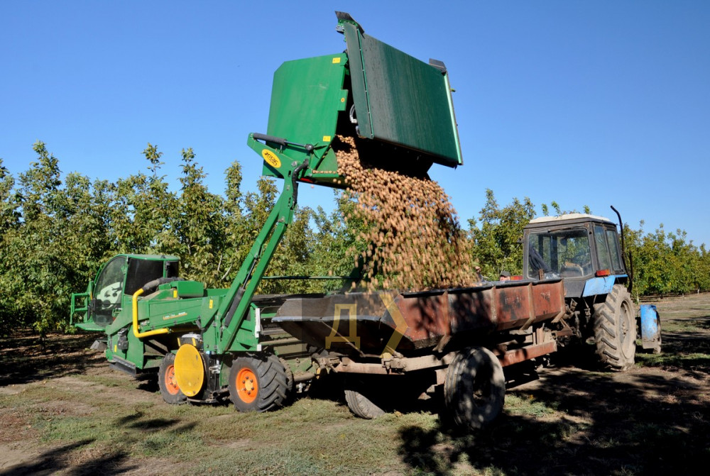 На вырученные от продажи урожая средства были приобретены орехоуборочный комбайн и шейкер (машина, которая стряхивает плоды с деревьев). В этом сезоне, по словам предпринимателя, он рассчитывает собрать всего около 200 тонн плодов, причем половина этого объема уже стоит в упаковках.