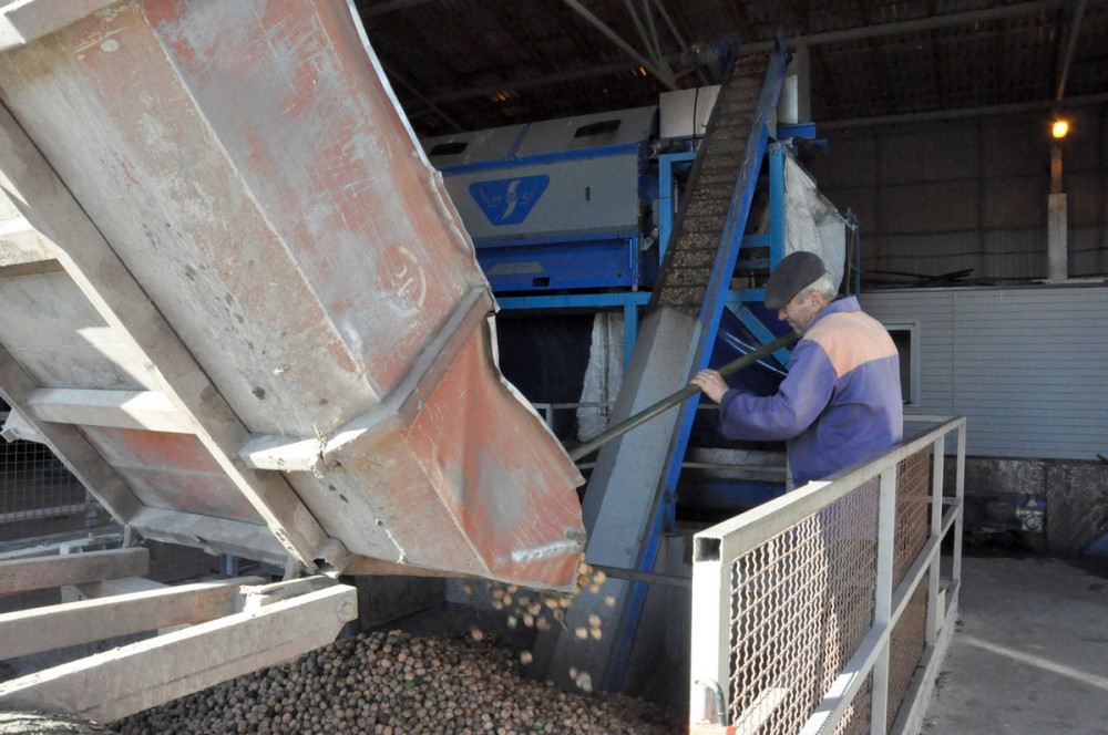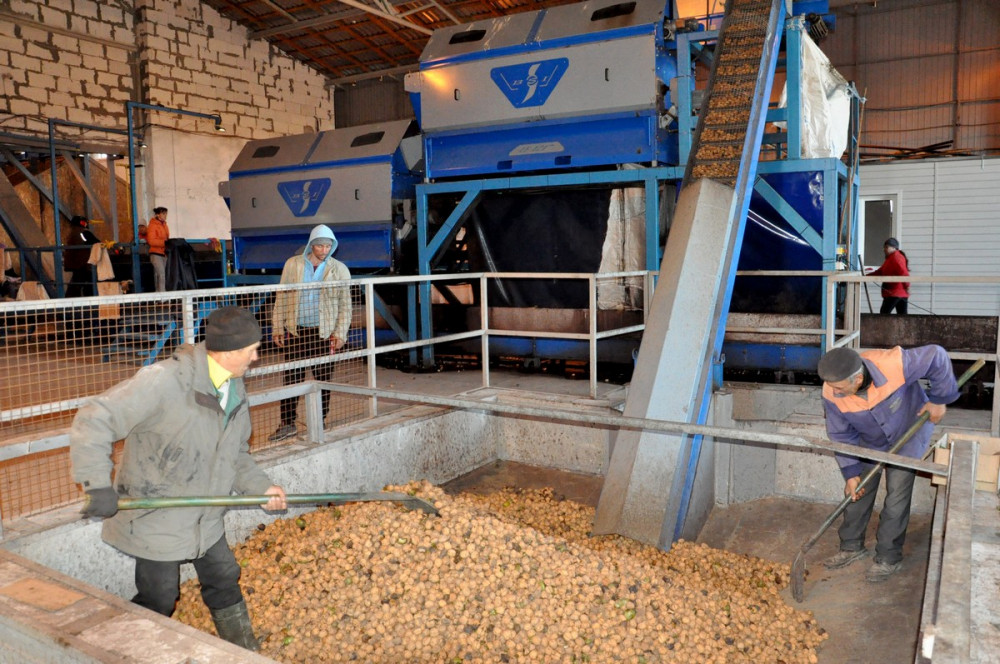 Просушенные орехи собираются в мешки и перевозятся в цех калибровки, где их сортируют в зависимости от диаметра. После этого плоды упаковывают в большие мешки весом по 800 кг в каждый. Теперь орехи — уже товар, готовый к реализации.
