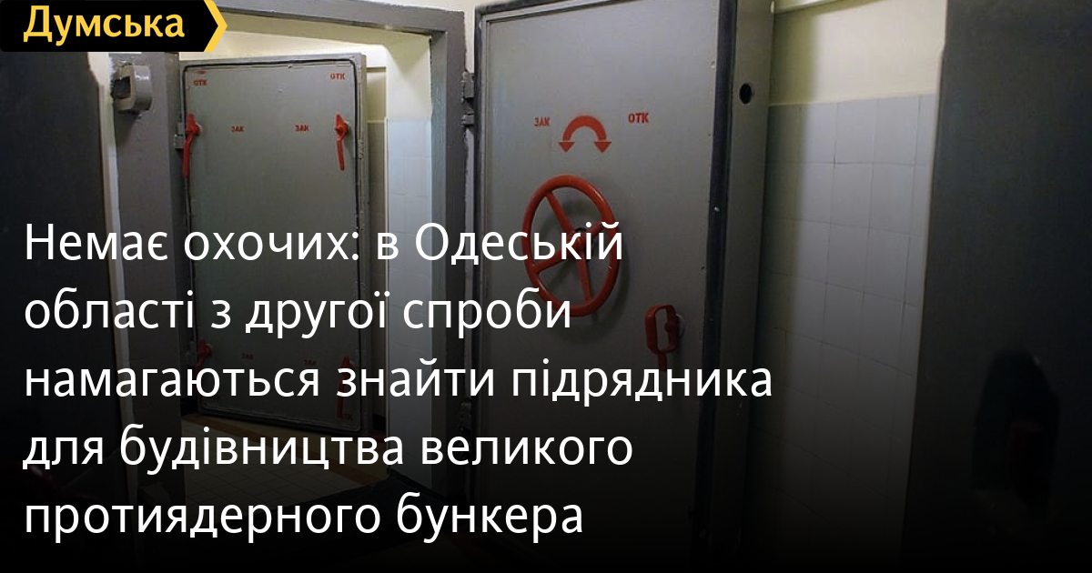 Немає охочих: в Одеській області з другої спроби намагаються знайти підрядника для будівництва великого протиядерного бункераПовторний тендер оголошено на будівництво протиядерного бомбосховища, яке вміщуватиме 200-250 осіб на території школи в селі Випасне в Білгород-Дністровському районі. Попередній раз підрядника на виконання робіт вартістю 41,38 млн грн шукали в липні. Однак тоді тендер провалився через те, що в ньому ніхто так і не взяв участі. Новий заплановано на 19 серпня. Запланований захисний об'єкт подібний до того, який у квітні вирішили будувати в селі Степанівка, але набагато більших розмірів. Нагадаємо, у Степанівці укриття розраховане на 12 осіб, але й коштує в рази дешевше — 7,5 млн грн. Притулок буде вкопано в землю на глибину два метри. Товщина залізобетонних стін сягатиме 30 см, об'єкт буде обладнано герметичними броньованими дверима, системою вентиляції, водопроводом, каналізацією, електростанцією, у ньому передбачено медпункт і приміщення для проведення шкільних уроків. Здача сховища запланована до 1 серпня 2025 року. СМЕРТЬ РОСІЙСЬКИМ ОКУПАНТАМ! Помітили помилку? Виділяйте слова з помилкою та натискайте control-enter Новини по цій темі: 30 серпня 2025: Двісті відсотків прибутку на онкохворих: як лікарні Одеської області переплачують десятки тисяч за медичне обладнання 15 квітня 2025: Ямковий ремонт за 50 млн: в Одесі починають латати дороги, заробить і депутат-"слуга» 10 січня 2025: Тендер на організацію харчування в психлікарнях Одещини майже на 100 млн гривень виграла фірма, викрита в махінаціях 25 листопада 2024: Для відновлення зруйнованого окупантами житла: в Одеській області оголосили два найдорожчі тендери за тиждень 22 листопада 2024: В Одесі з 23 листопада перекриють узвіз Маринеско через ремонт |
