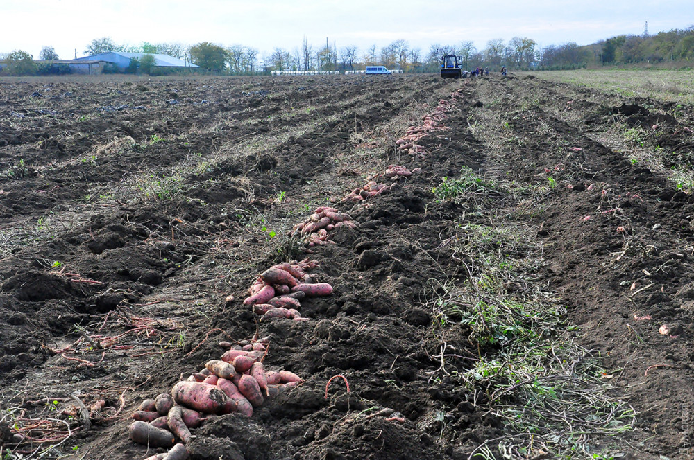 В Измаильском районе Одесской области полным ходом идет уборка органического батата, именуемого в народе «сладким картофелем». Выращивают этот, пока еще не очень известный массовому потребителю, корнеплод в селе Сафьяны, на полях ООО «Дунайский аграрий» (директор Роман Дяжук).
