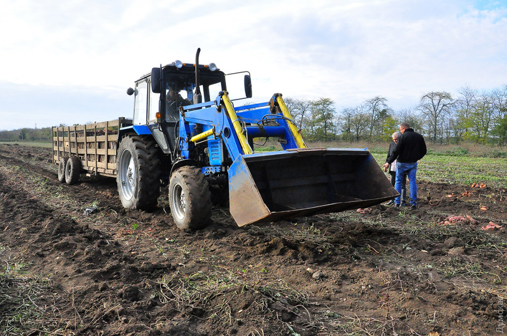 Батат размножается черенками. Когда приходит время уборки урожая, мы сразу загоняем в поле трактор смульчирователем, который скашивает листья. Затем рабочие вручную убирают пленку и остатки системы капельного орошения. После этого трактор со скобой выкапывает батат, а люди собирают и грузят его в ящики».