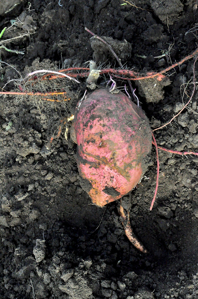 «Батат относится к семейству вьюнковых, растет он в виде лианы, достигающей в длину трех-пяти метров, — рассказывает Роман. – Происходит эта культура из тропических регионов Америки. Ее ошибочно считают разновидностью картофеля, но на самом деле эти культуры не имеют ничего общего. Картофель – это семейство пасленовых.