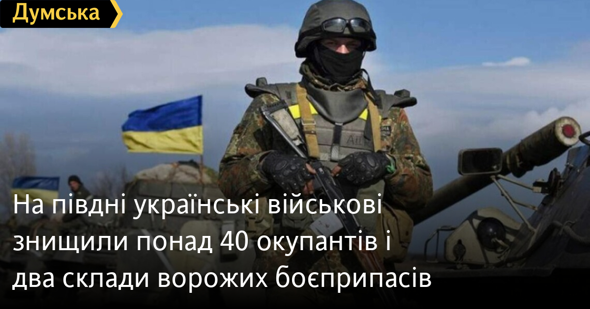 На півдні українські військові знищили понад 40 окупантів і два склади ворожих боєприпасівДесятки одиниць ворожої техніки, два склади з боєприпасами і 43 оккупантів знищили українські захисники минулої доби на півдні країни. Як повідомили в Оперативному командуванні «Південь», штурмова авіація наших Повітряних сил нанесла шість ударів по пунктам розгортання зенітно-ракетних комплексів «Бук- 2М», «ТОР» та «ПАНЦИР». Крім того, пара геликоптерів Мі-24 та Мі-8 атакувала район зосередження живої сили та техніки ворога неподалік Любомирівки. Ракетно-артилерійські підрозділи Сил оборони відпрацювали понад 440 вогневих завдань. В результаті ворог втратив 43 особи, шість танків, девять одиниць авто-бронетехніки, дві гаубиці 152 калібру, командно-штабну машину та безпілотник-розвідник. Знищено також два склади боєприпасів в Бериславському районі. СМЕРТЬ РОСІЙСЬКИМ ОКУПАНТАМ! Помітили помилку? Виділяйте слова з помилкою та натискайте control-enter |