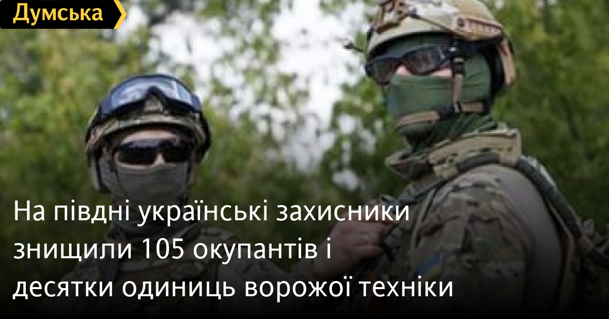 105 російських окупантів, десятки одиниць ворожої техніки і три склади з боєприпасами знищили українські захисники минулої доби на півдні України.