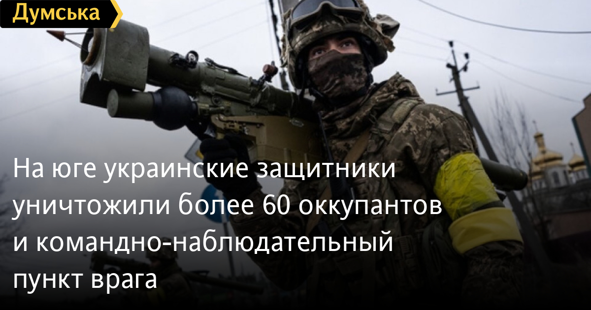 На юге украинские защитники уничтожили более 60 оккупантов и командно-наблюдательный пункт врагаЗа прошедшие сутки на юге страны Вооруженные силы Украины уничтожили вражеский командно-наблюдательный пункт и 66 оккупантов. Как сообщили в Оперативном командовании «Юг», за сутки ракетно-артиллерийские подразделения выполнили около 190 огневых задач. Украинским защитникам удалось уничтожить 66 оккупантов, пять танков, две самоходные гаубицы «Гвоздика», противотанковый ракетный комплекс «Фагот», три единицы бронированной и автомобильной техники. Кроме того, ликвидирован командно-наблюдательный пункт 785-го отдельного отряда спецназначения нацгвардии рф и склады с боеприпасами. СМЕРТЬ РОССИЙСКИМ ОККУПАНТАМ! Заметили ошибку? Выделяйте слова с ошибкой и нажимайте control-enter |