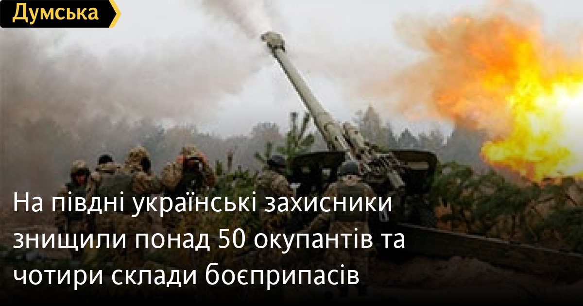 На даний час підтверджені втрати росіян складають 52 окупанти, чотири танки, дві самохідні артилерійсько-мінометні установки «Нона-С», самохідна артустановка, вісім одиниць броньованої та автомобільної техніки, а також чотири склади з боєприпасами у Бериславському та Баштанському районах.