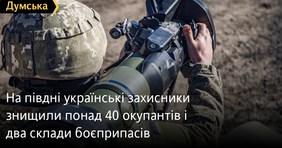 Понад 40 російських окупантів, два склади з боєприпасами і техніку ворога знищили українські військові минулої доби на півдні країни.