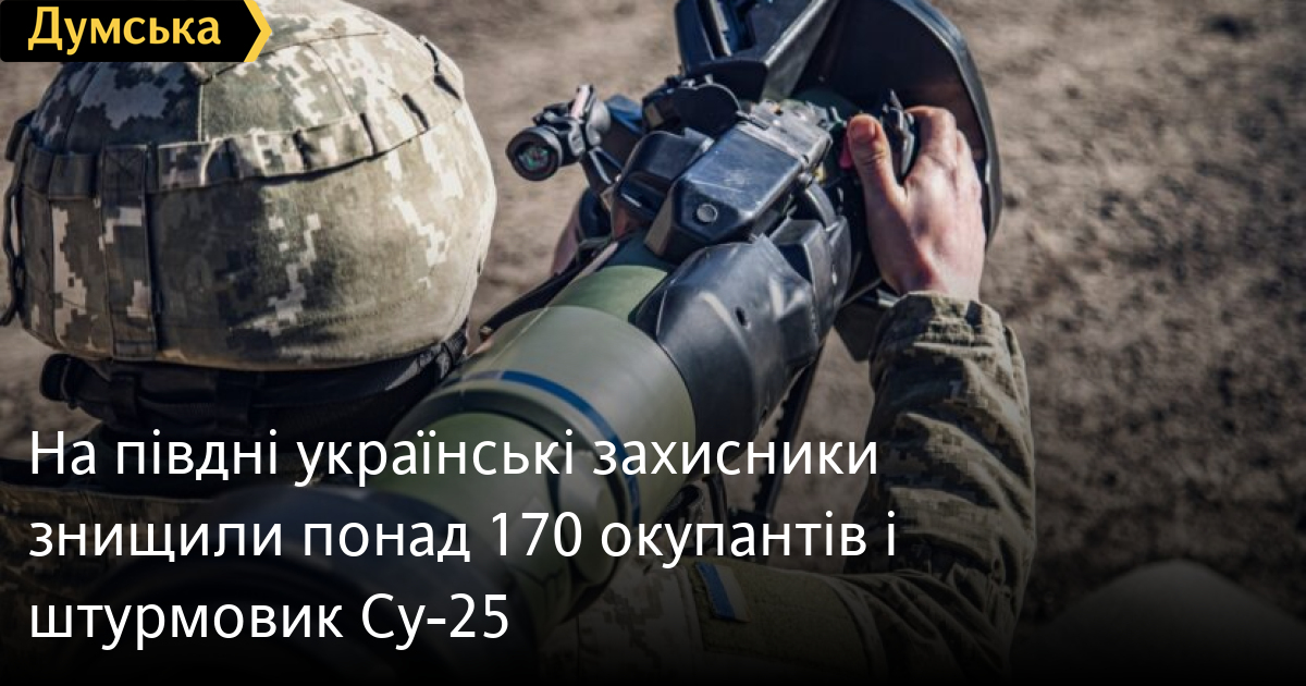 «Поблизу Дудчан і Червоного, на Бериславщині нашими підрозділами протиповітряної оборони збито два безпілотних шпигуни «Орлан-10» та російський штурмовик Су-25», — підкреслили в ОК «Південь».