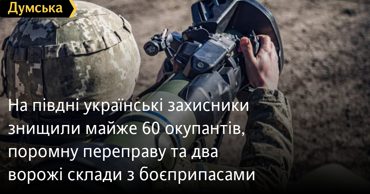 59 російських окупантів, ворожу техніку та склади з боєприпасами знищили українські захисники минулої доби на півдні країни.