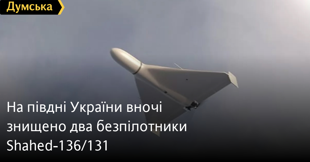 Два іранські ударні безпілотники Shahed-136/131 знищила протиповітряна оборона уночі 16 червня на південному напрямку, у Миколаївській області.